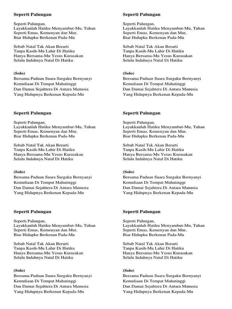 Dapatkan informasi, inspirasi dan insight di email kamu. F g/f e am bersama paduan suara surga kubernyanyi. Seperti palungan layakkanlah hatiku menyambutmu tuhan seperti emas kemenyan dan mur biar hidupku berkenan padamu. Seperti palungan, layakkanlah hatiku menyambutmu tuhan, seperti emas, kemenyan dan mur, biar hidupku berkenan padamu. Oke di blog ini ada lagu dan chord gitar yang bisa menolong temen temen.
